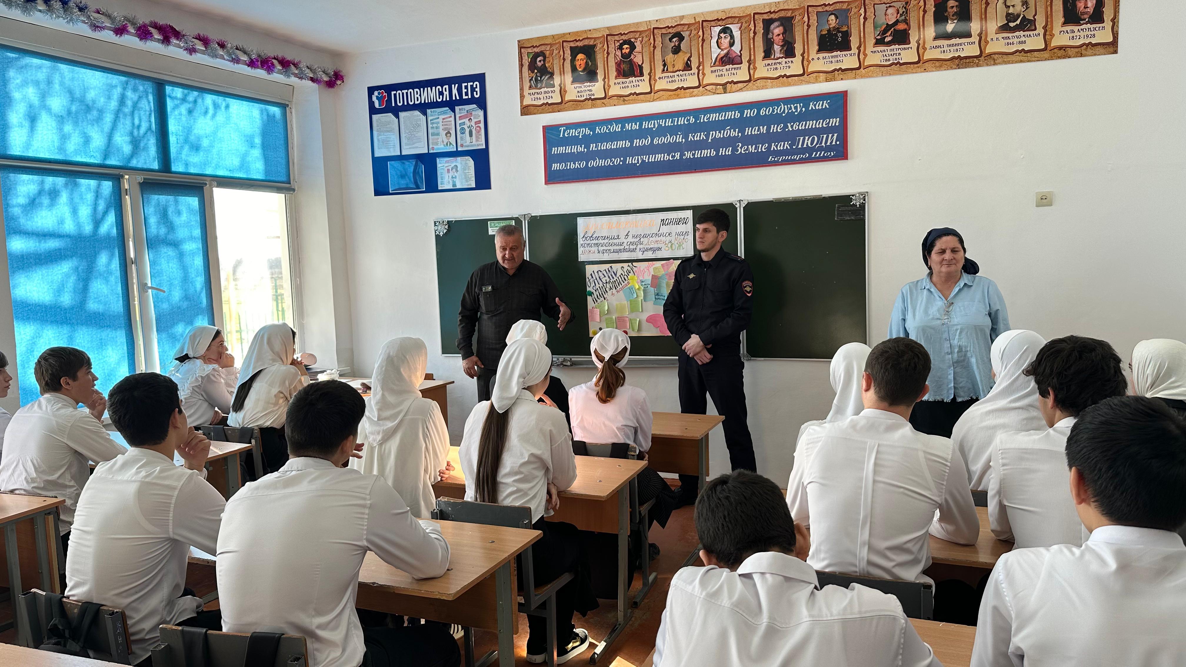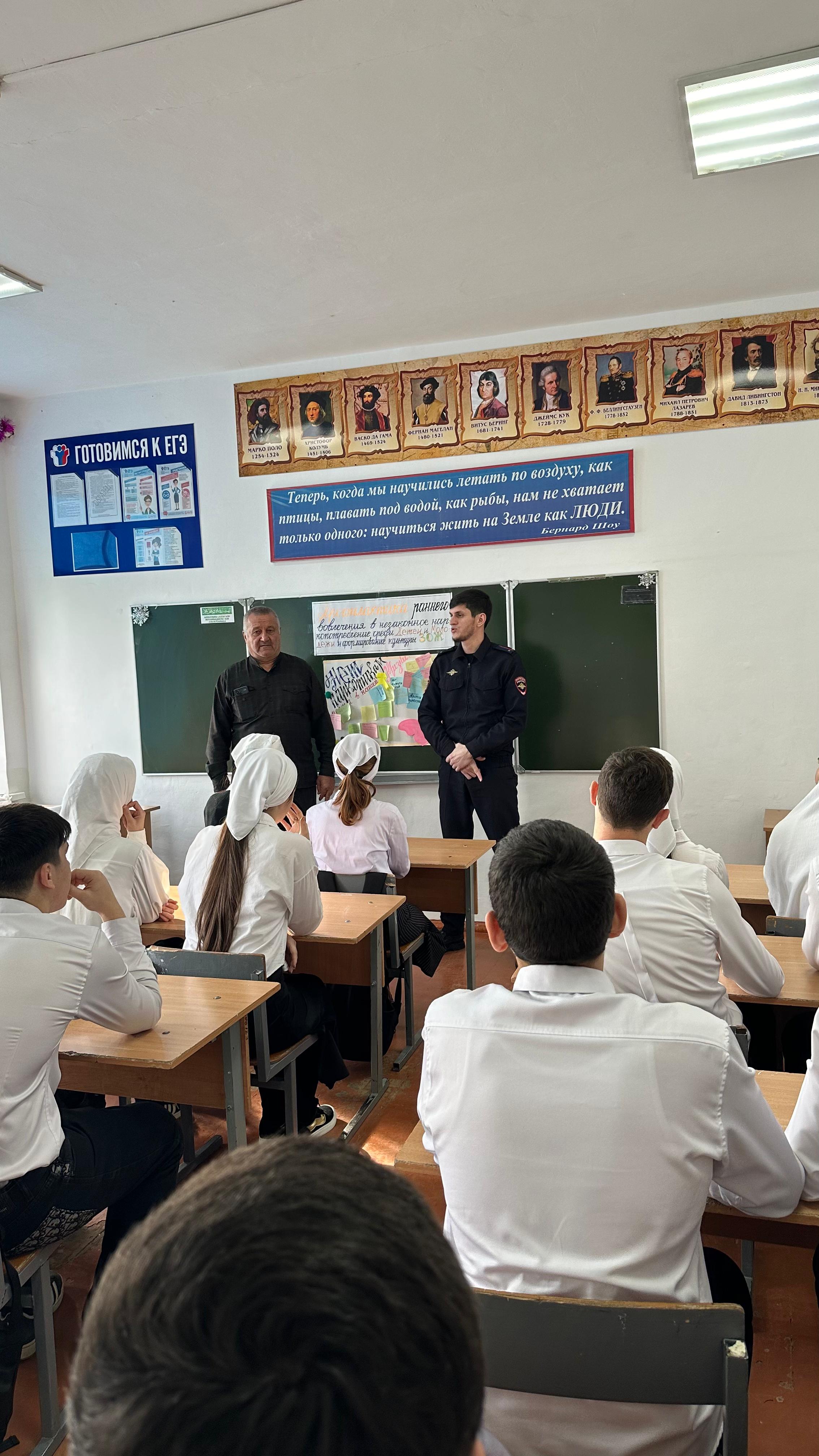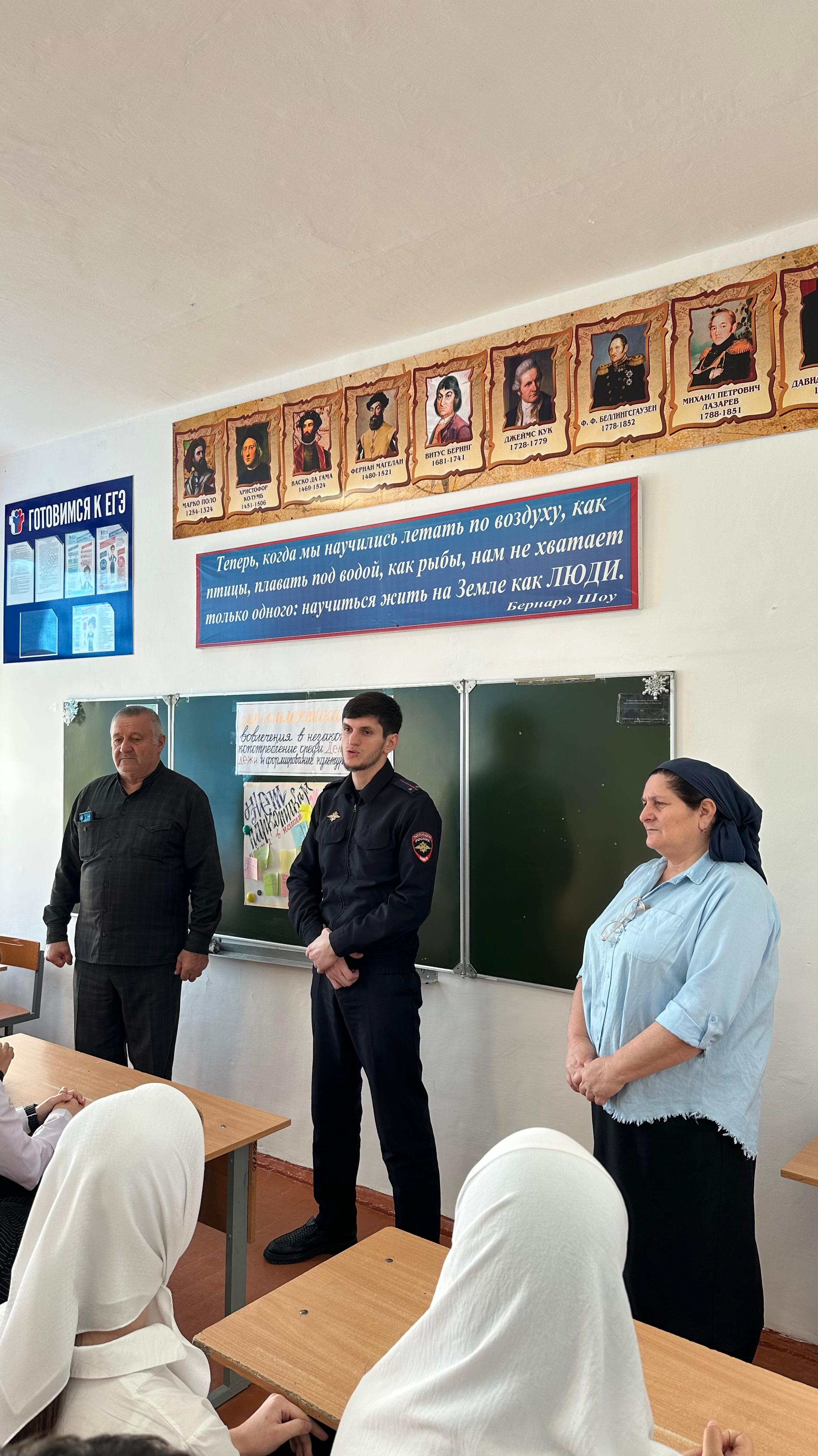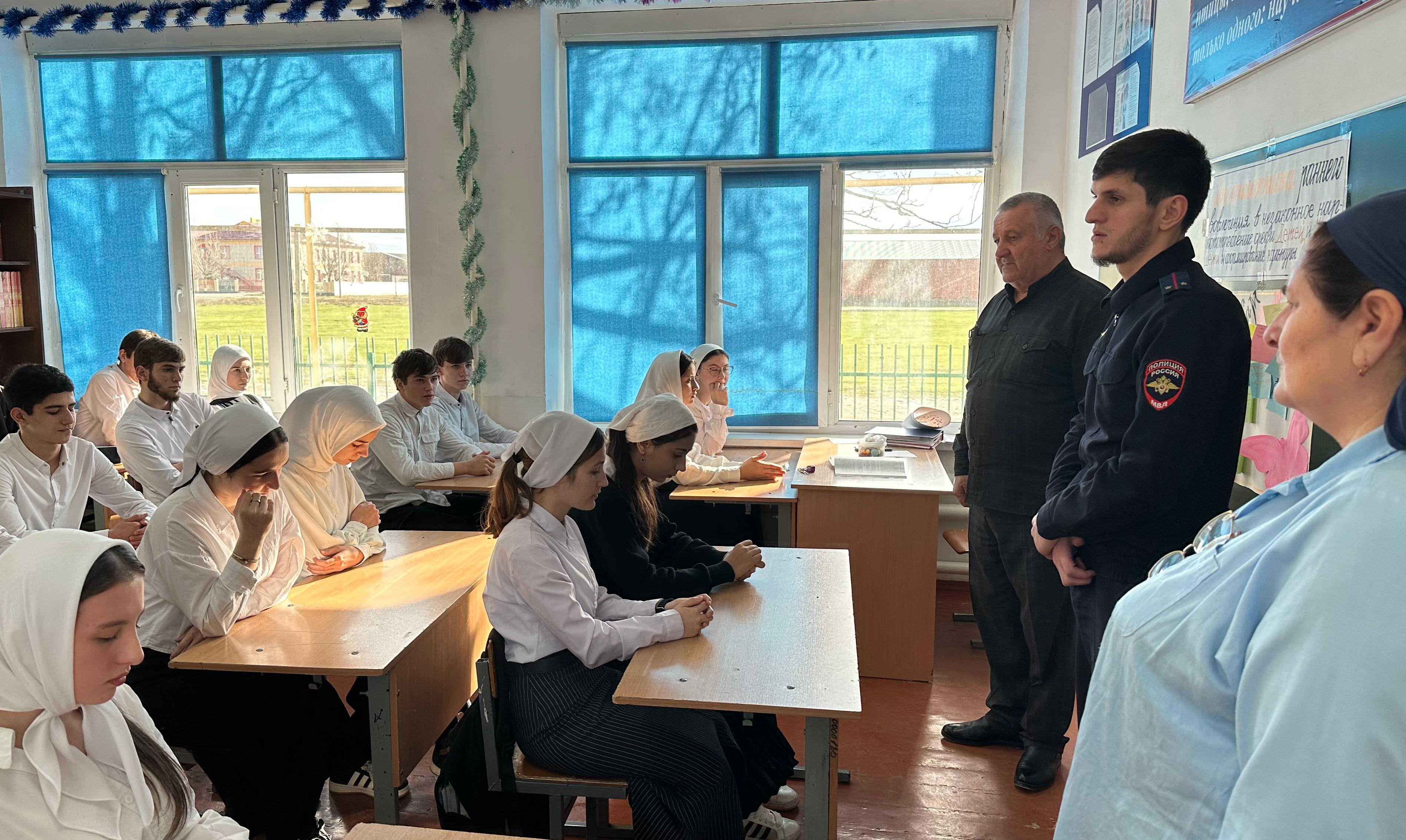19.12.2024Уважаемые друзья! Сегодня в МБОУ "Курдюковская СОШ" с обучающимися 9-11 классов была проведена беседа на тему "Наркомания среди несовершеннолетних и молодёжи, выявление и пресечение фактов их вовлечение в противоправную деятельность, связанную с незаконным оборотов наркотических средств в Чеченской Республике". На данном мероприятии выступили : Социальный педагог- Буиев И.Л.Педагог-психолог- Сулейманова А.Ш.Заведующая ФАП ст Курдюковская - Баширова Н.В.Педагог по ДНВ- Сунчханов И.А.Инспектор ПДН лейтенант полиции - Айгумов Д.И-А.Встреча для детей носила профилактический, информационный, познавательный характер. Гости ответили на вопросы обучающихся.