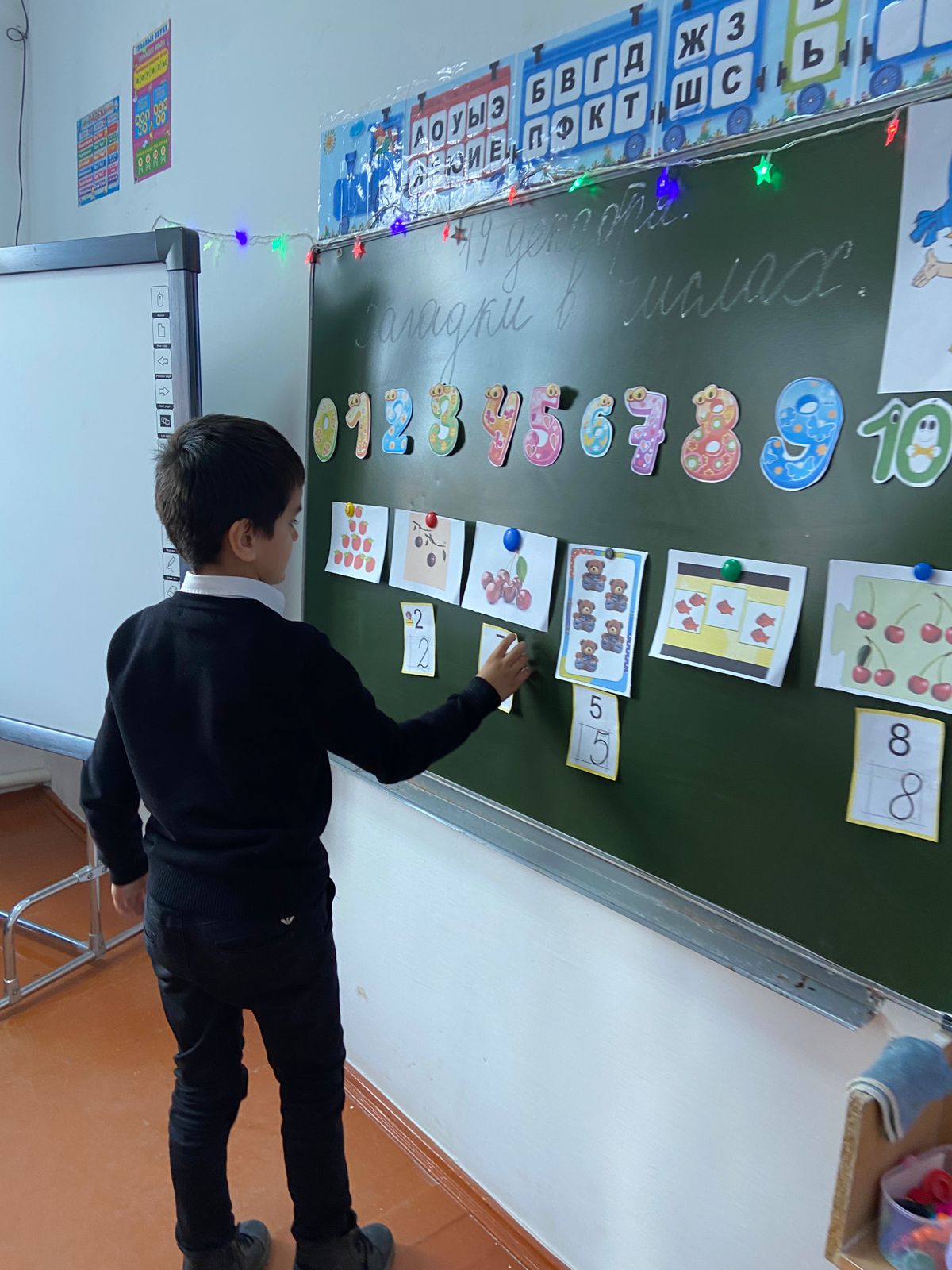 19.12.24 г. В 1 Б классе было проведено творческое занятие на тему «Загадки в числах». На занятии учащиеся отгадывали числовые загадки, делали парную работу и работу у доски на соответствие количества предметов с числами. Целью занятия было развитие логического мышления, внимания и речи.